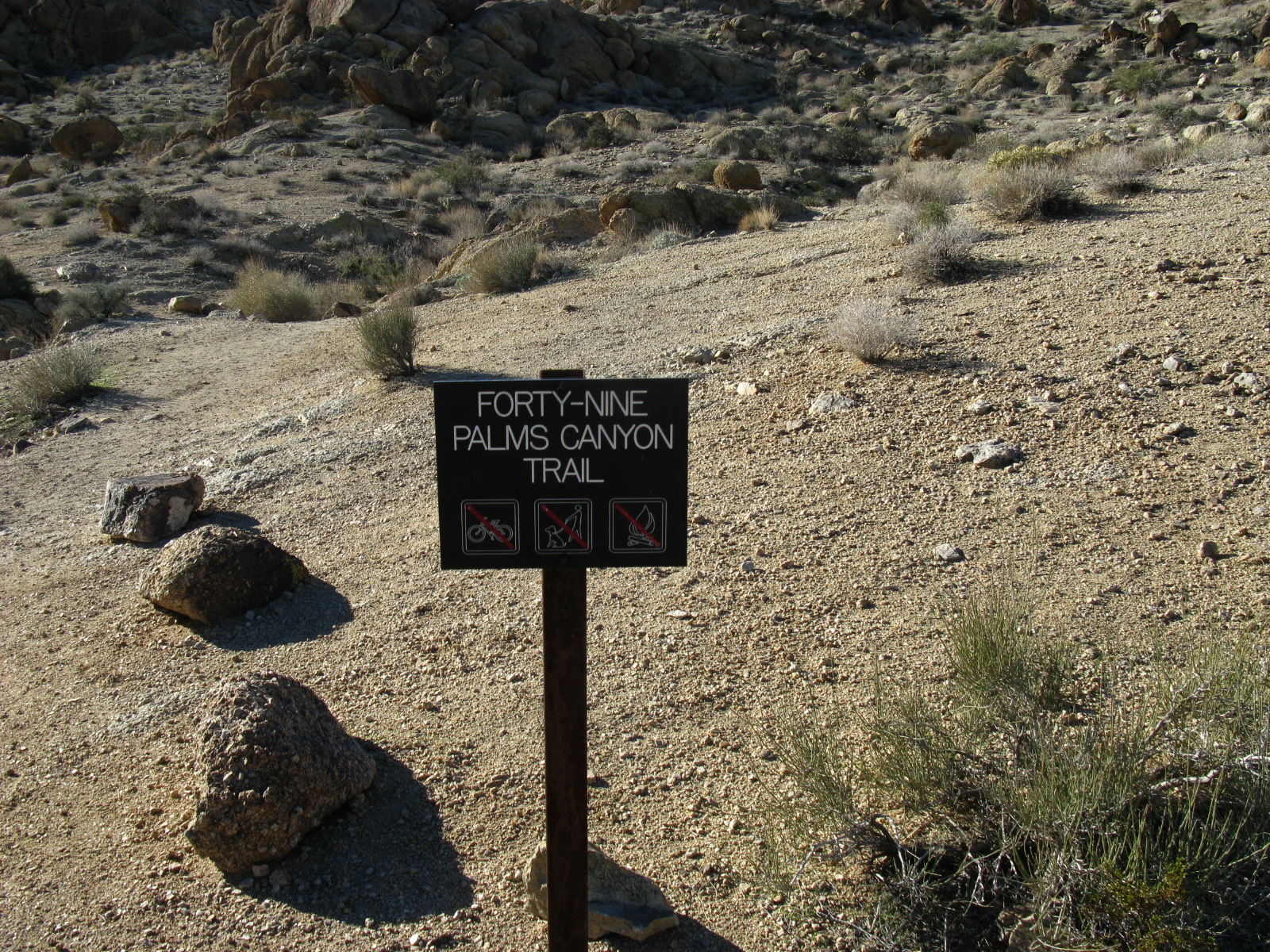 Julie near the rental car in the parking lot at the Forty-Nine Palms Canyon Trailhead