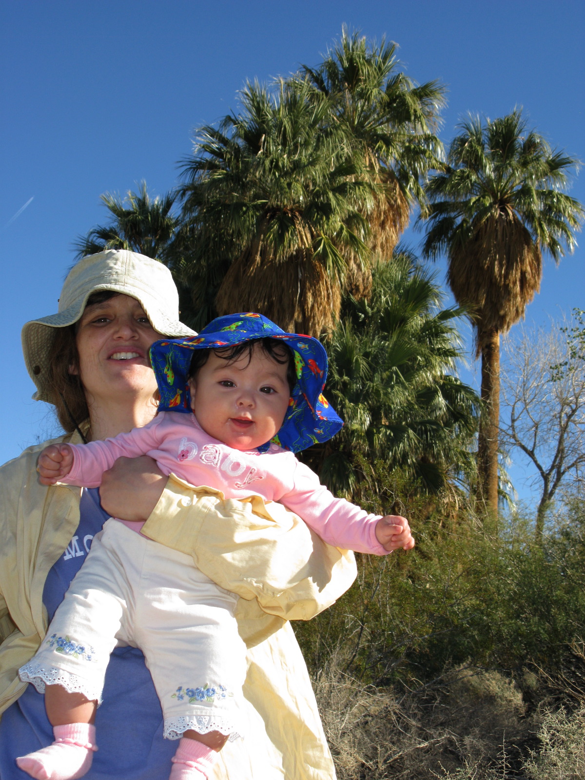 Julie and Dennis in front of the California Fan Palms at the Oasis of Mara
