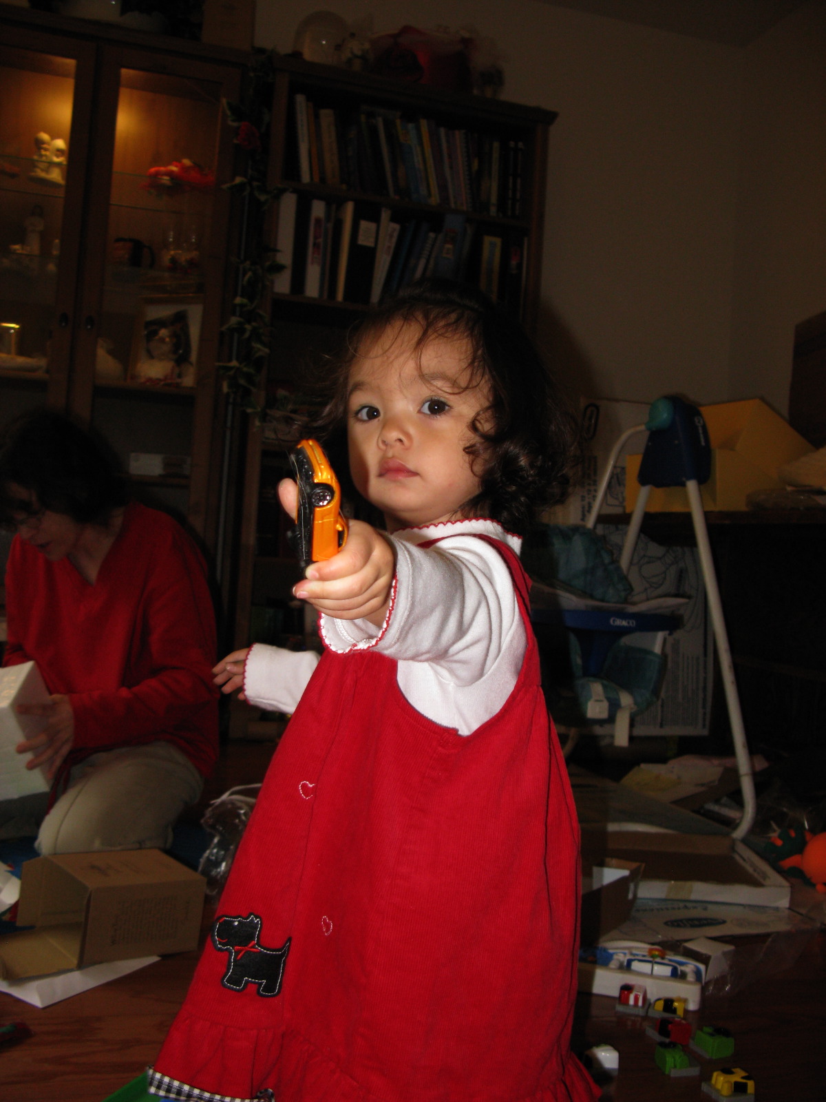 Julie unwrapping a present