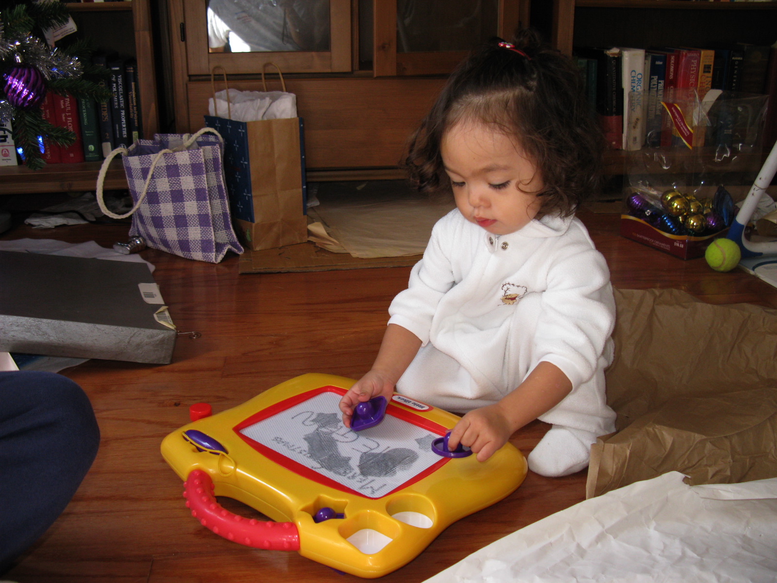 Dennis using her Little Tikes Magnadoodle board
