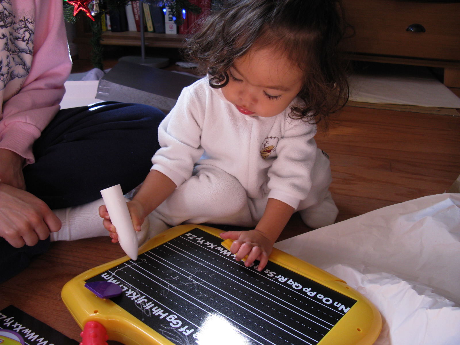 Dennis using her Little Tikes Magnadoodle board