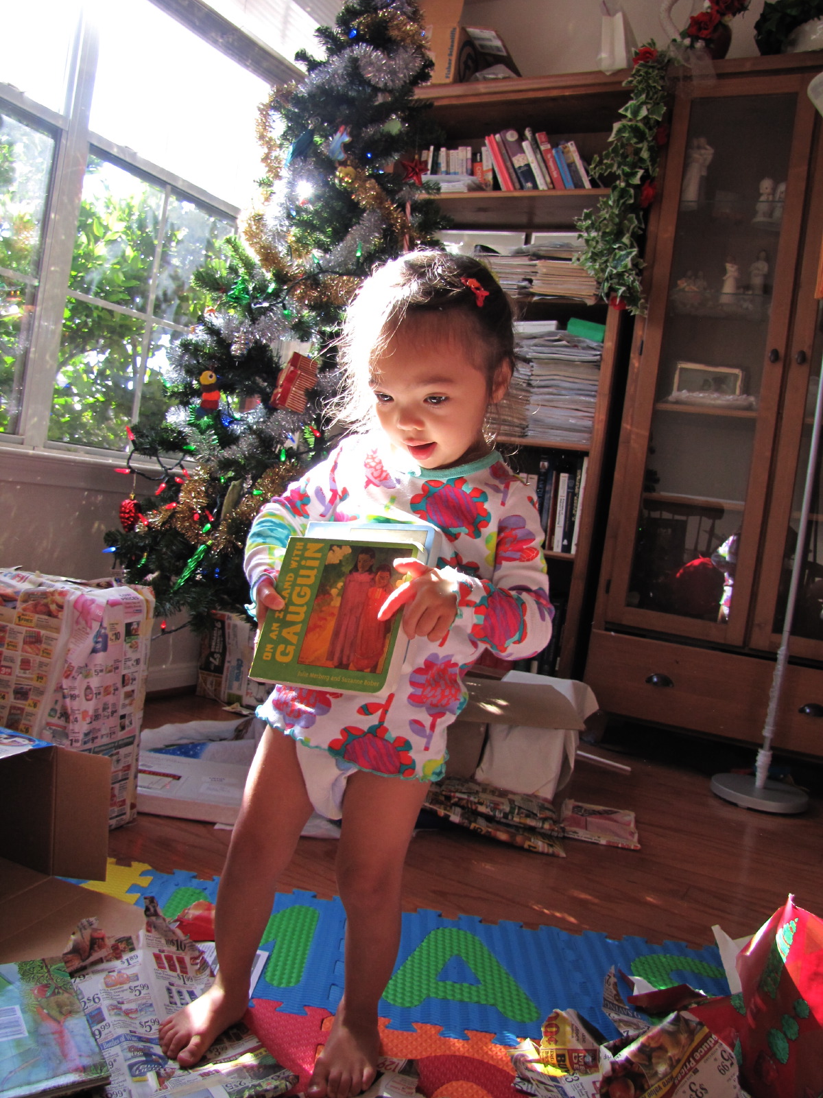 Holding art books from Gu-Gu (Aunt Peggy)