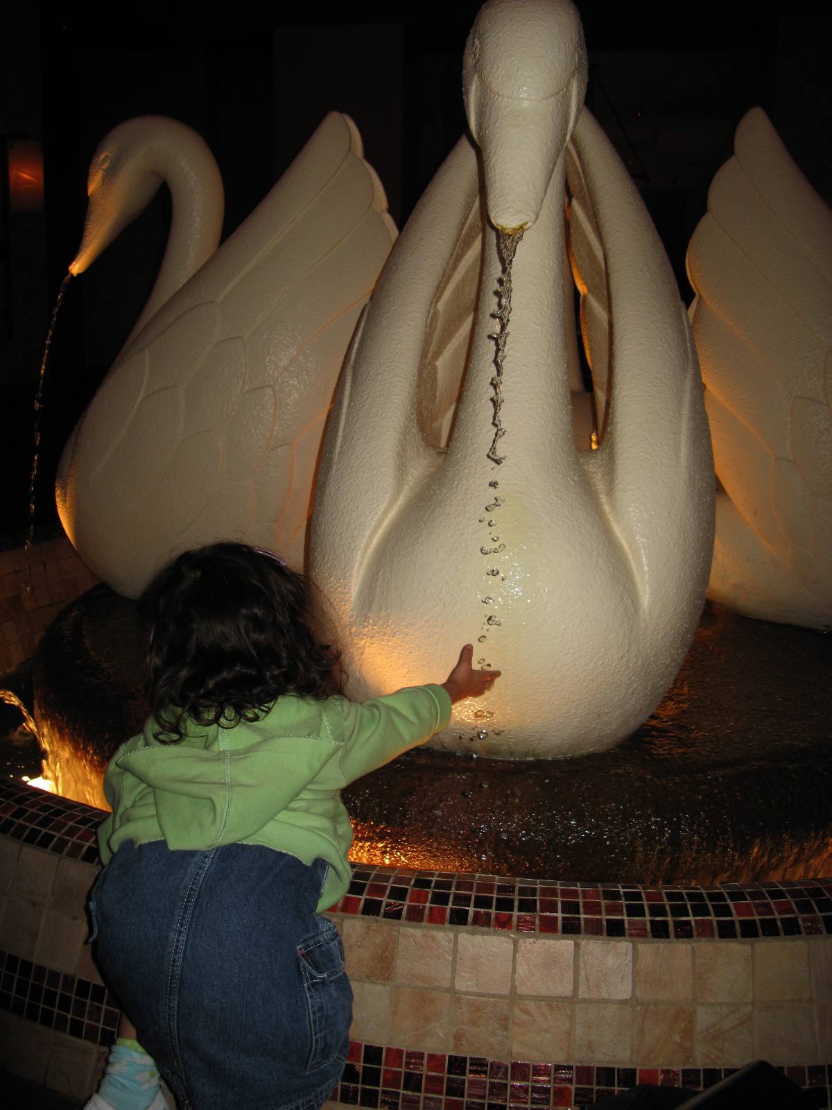 Dennis and Mommy with a Swan Fountain