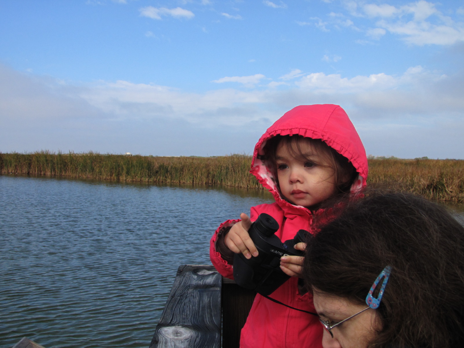 Dennis using bioculars, Port Aransas Birding Center, Port Aransas, Tx