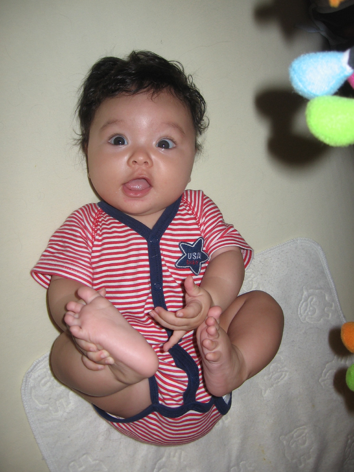 Dennis in a patriotic onesie