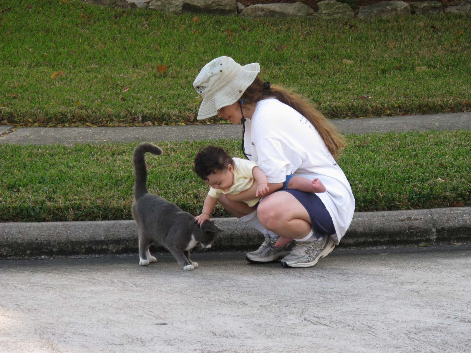 Dennis and Mommy with a neighborhood scarecrow