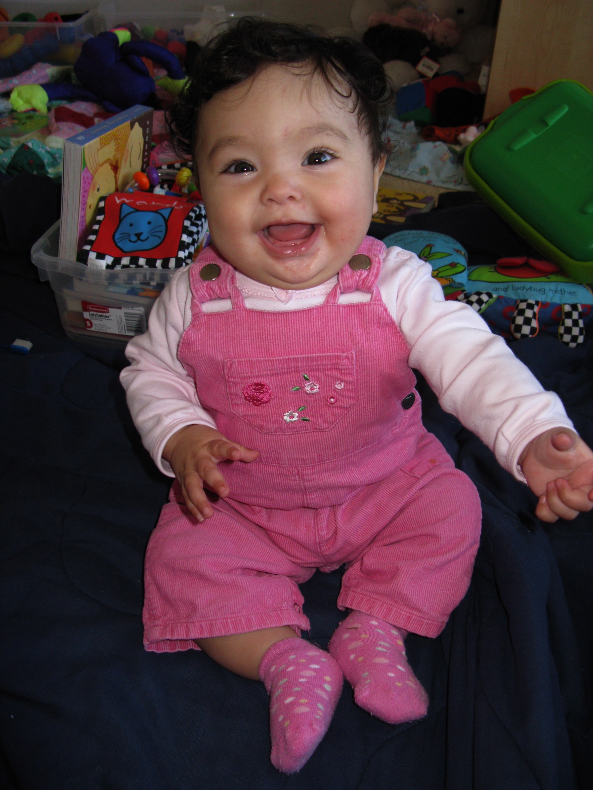 Dennis in her pink overalls