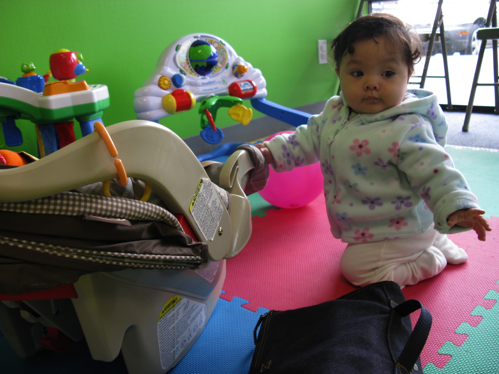 Dennis with her car seat and diaper bag