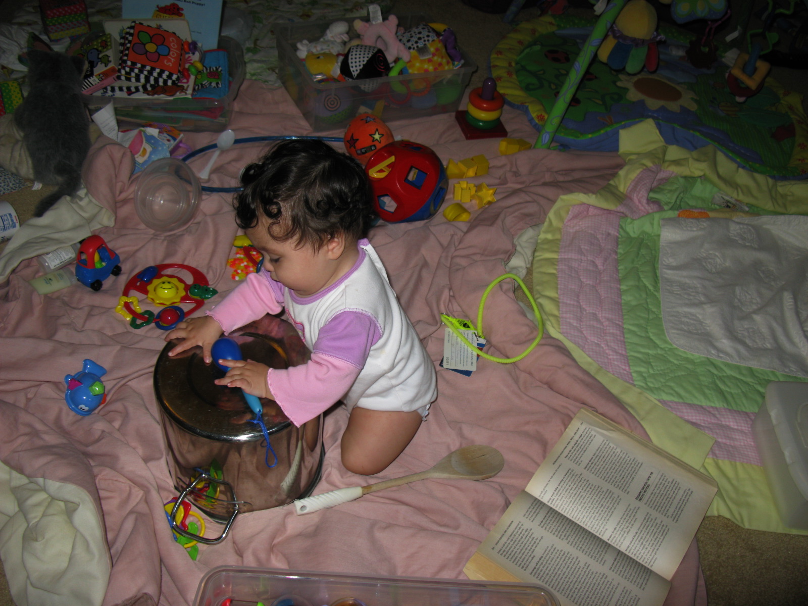 "Woah! what was that noise?" Dennis's curiousity is piqued by the loud shuttle launch. (Note the foam Shuttle near her leg)