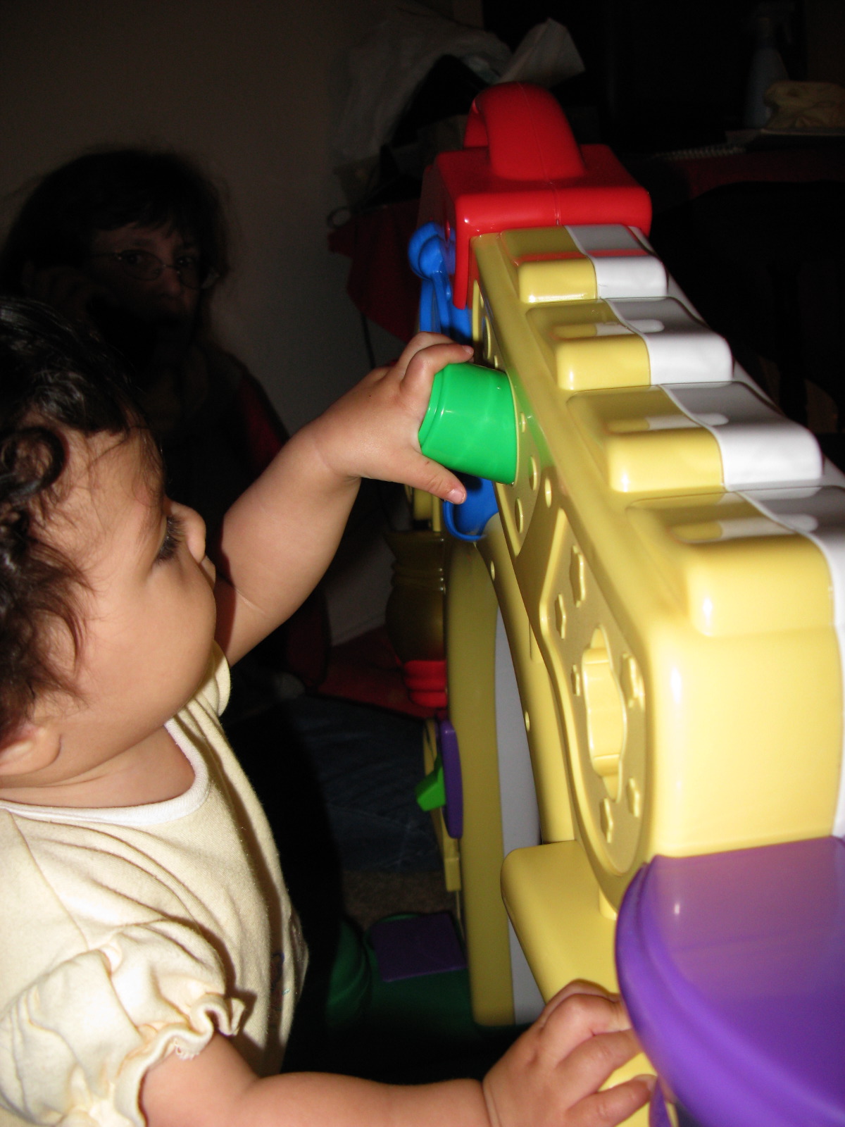Dennis pushing the radio buttons on the Laugh 'n Learn Home