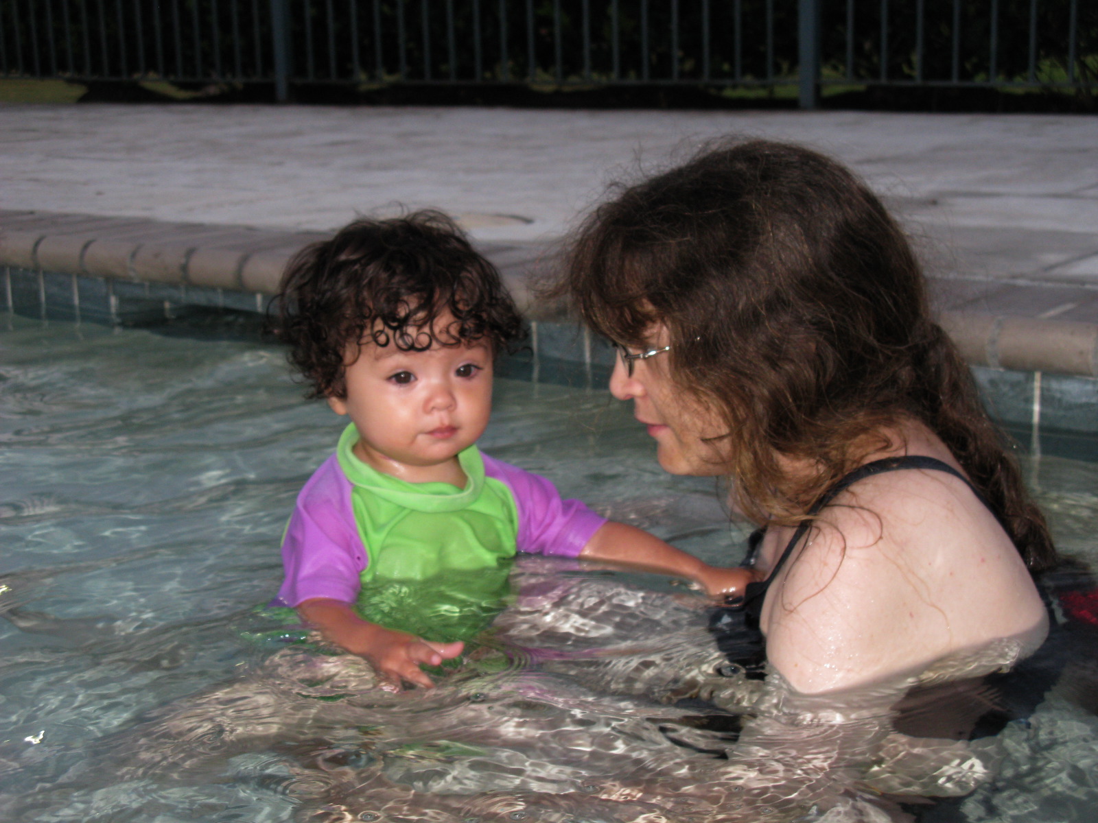 Dennis's first time in the pool