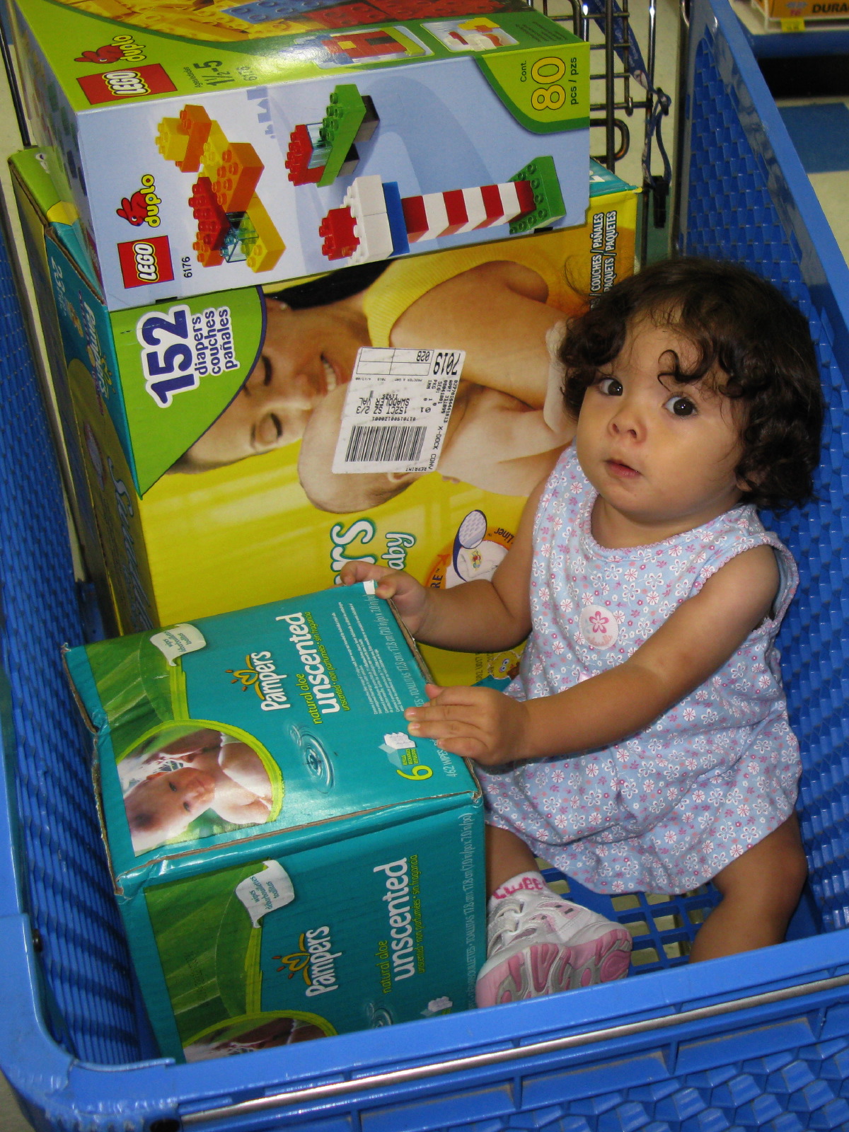 Dennis in her new shoes trying out a popper at Toys 'R Us