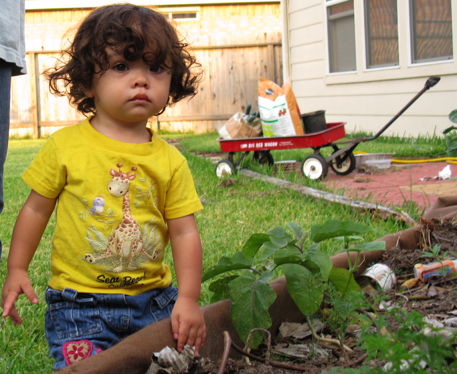 Dennis standing on the patio in her gardening gear