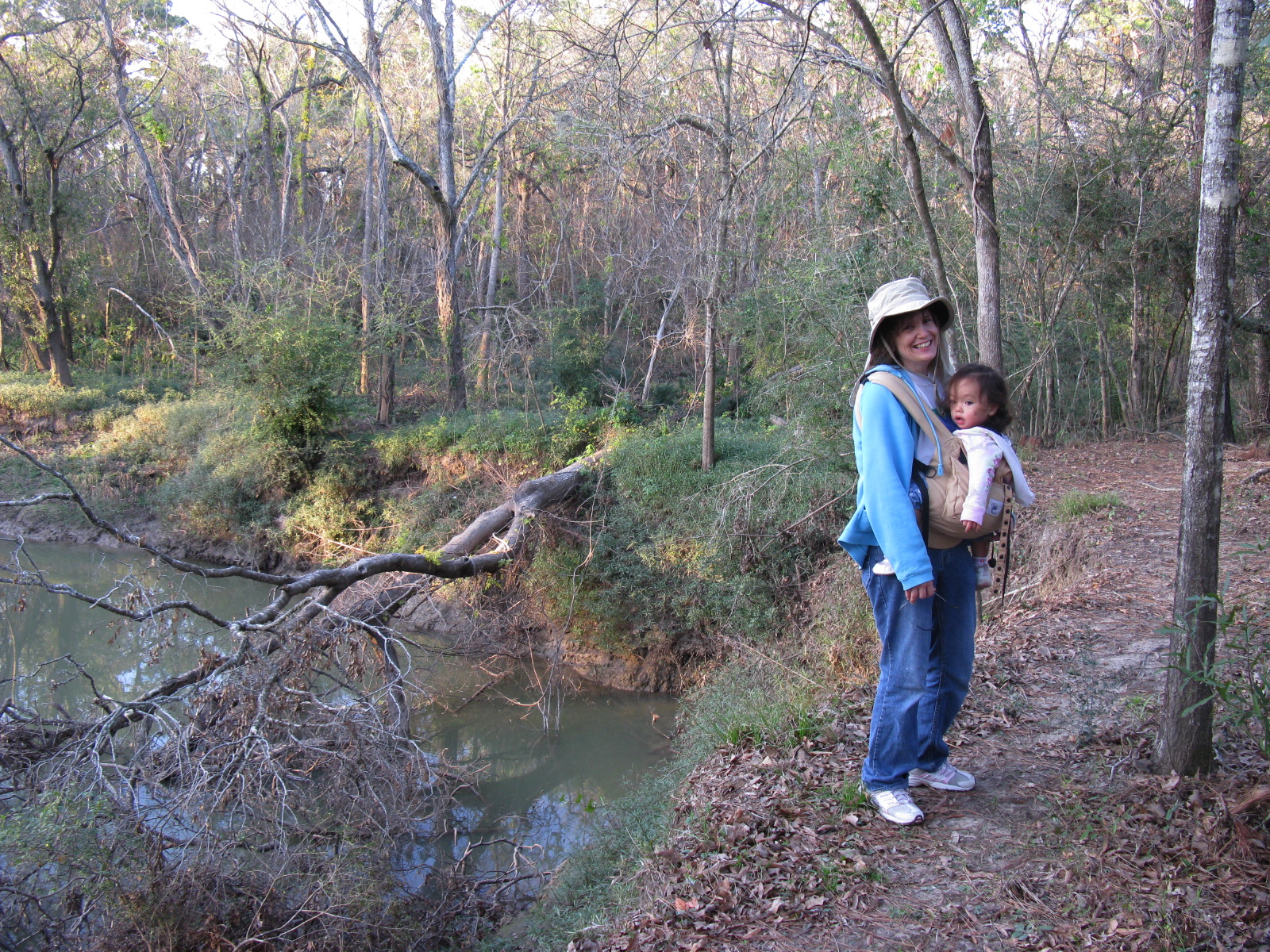 Mommy and Dennis on the trail at Frankie Carter Randolph Park. (Trees down from Hurricane Ike)