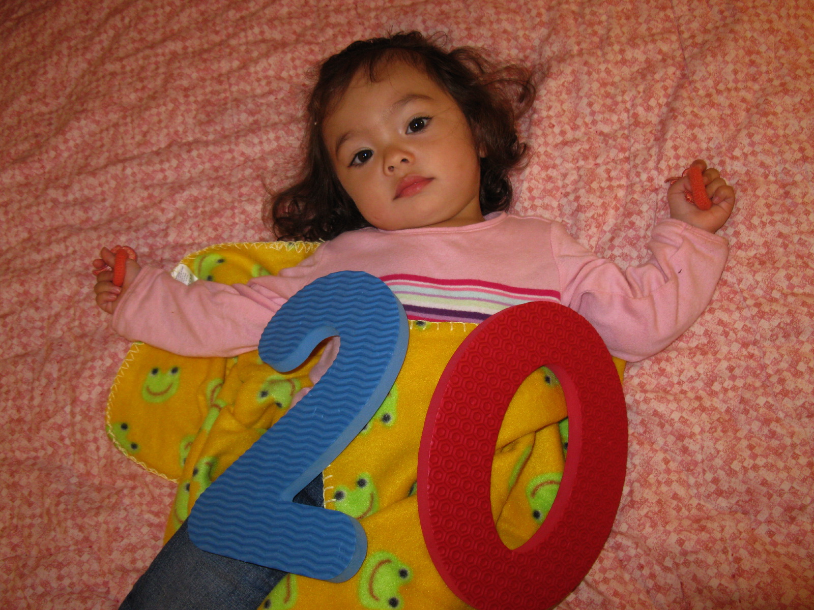 Dennis wearing the frog fleece as a shawl