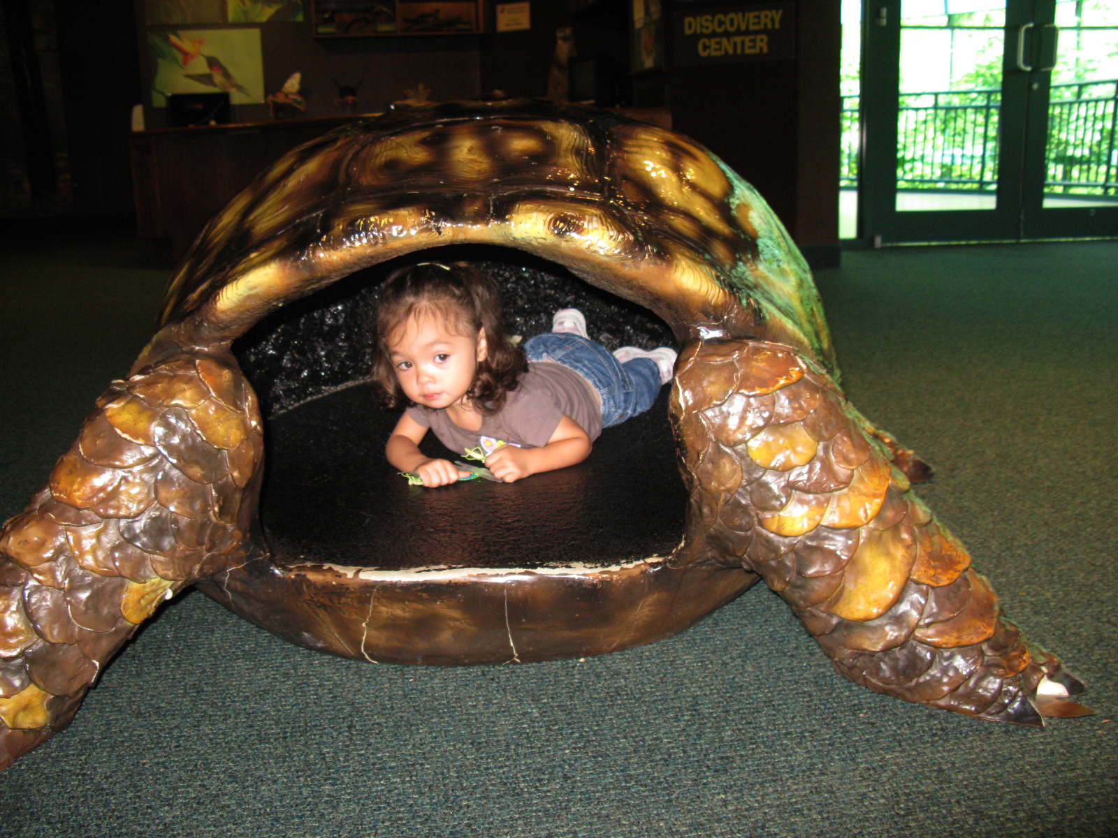 Dennis in a giant log, Virginia Living Museum