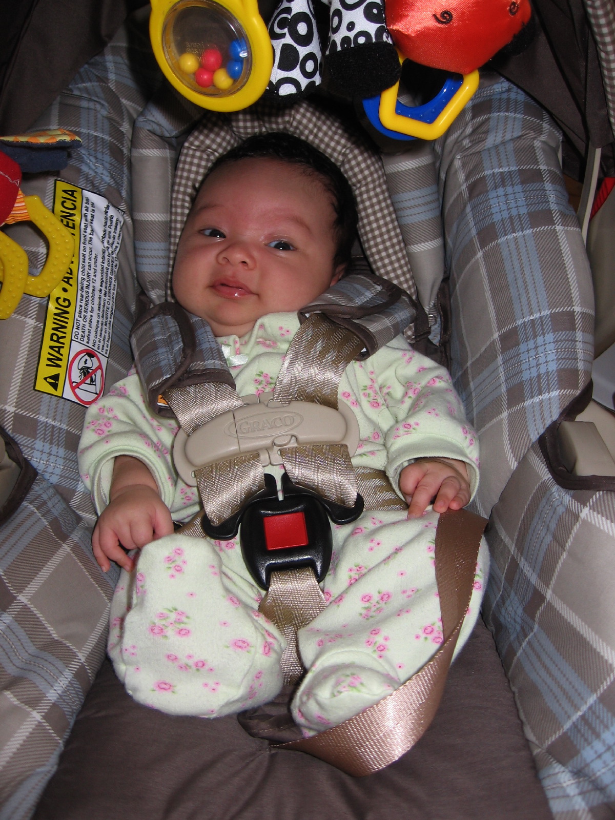 In the car seat in a Green sleep-n-play