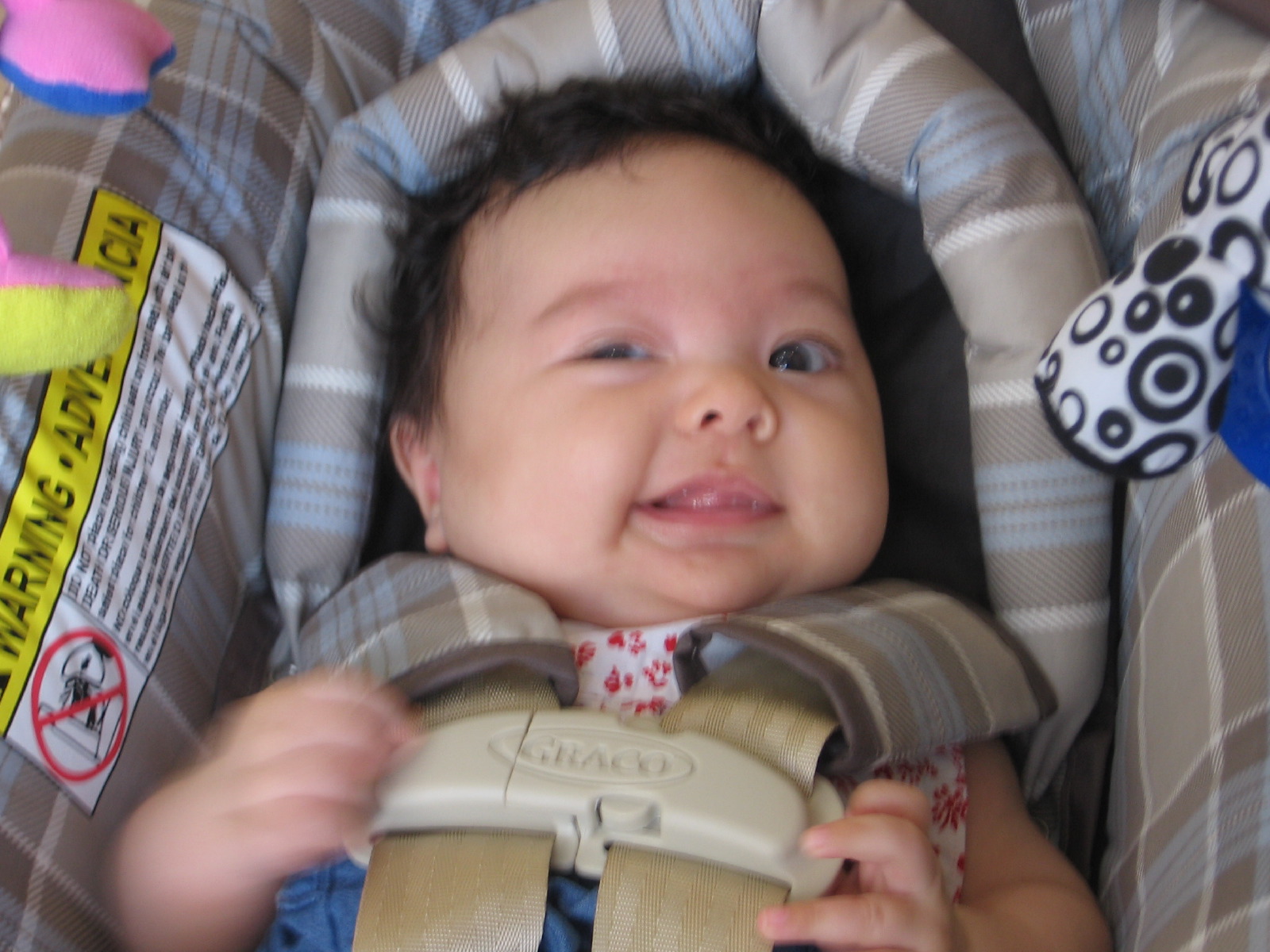Happy in her carseat at the opthalmologist